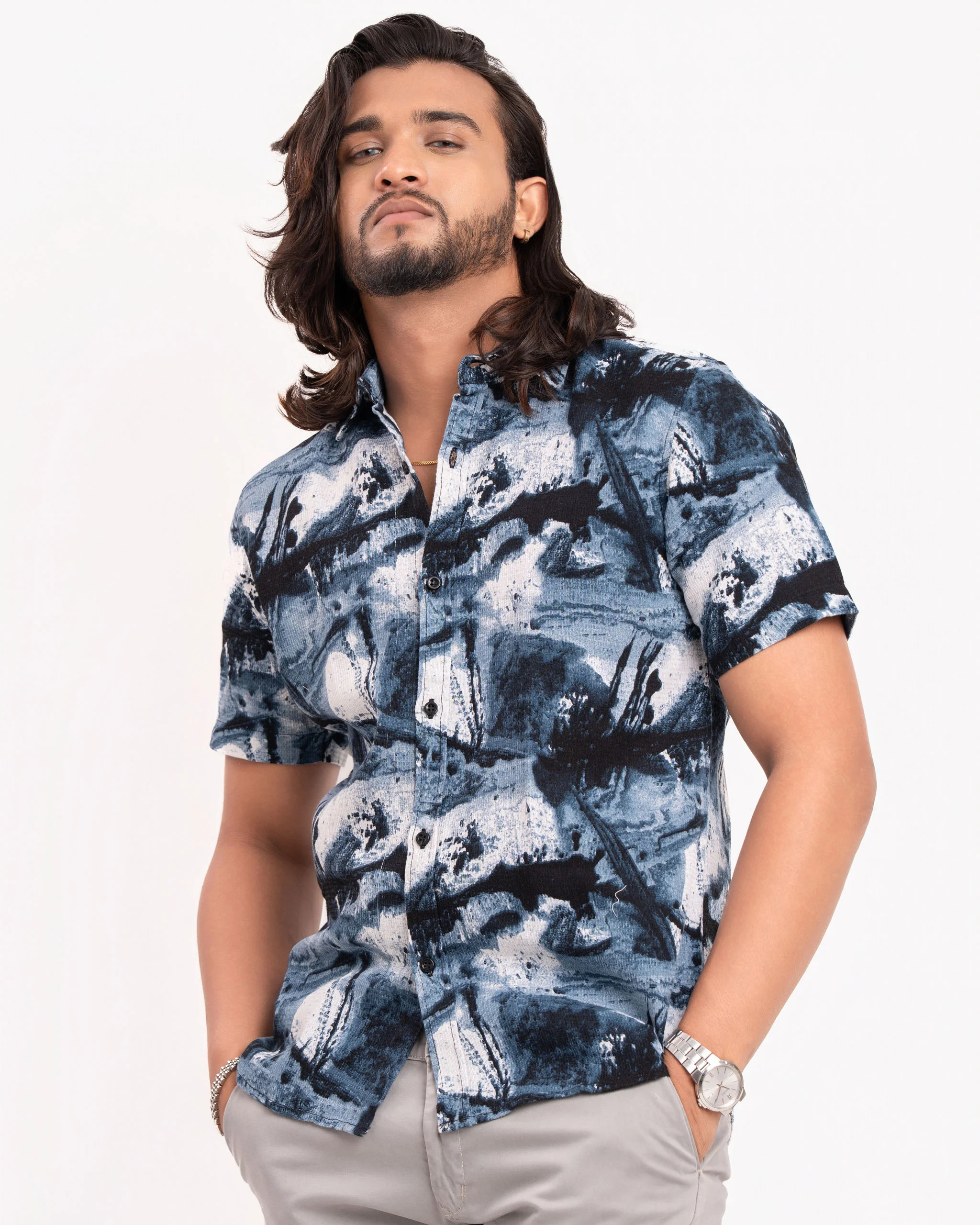 Men’s Abstract Short Sleeve Button-Down Shirt